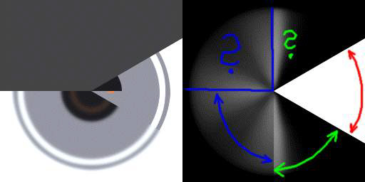 (right). Now we can determine the three areas the three different propmodels use when they appear one after the other when the engine is starting and the prop is going to move. -First is the white triangle at right (red). This is the